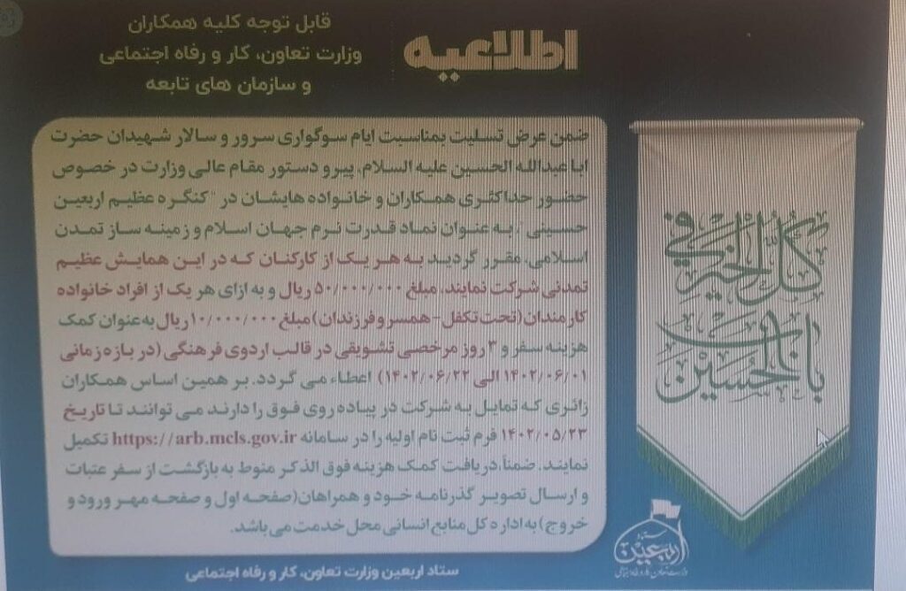 اطلاعیه جنجالی وزارت کار درباره کمک هزینه شرکت در راهپیمایی اربعین