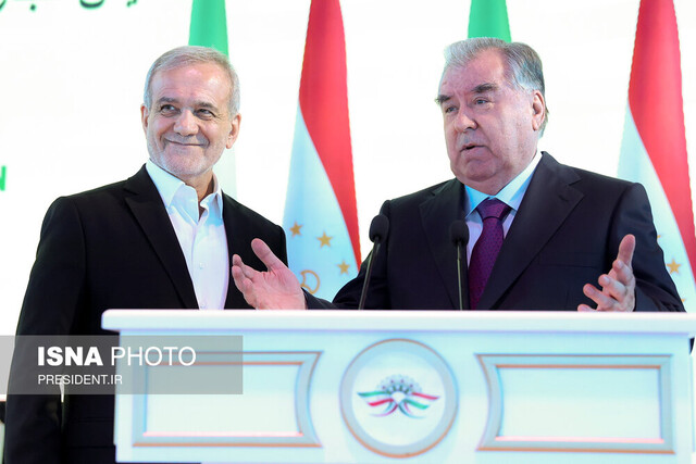 به گزارش ایسنا، مسعود پزشکیان امروز پنجشنبه ۲۷ دی ماه، در جریان سفر به تاجیکستان با حضور در همایش تجاری، گردشگری و سرمایه گذاری تاجیکستان و ایران، بیان کرد: ما یک ساختار مناسبی نیاز داریم که در آن ارتباطات شکل بگیرد. این ساختار می تواند به صورت کمیسیون مشترک تجاری باشد. هر چقدر بتوانیم درون این ساختار نفوذ و برنامه عمیق تری داشته باشیم، ارتباط دو کشور افزایش می یابد. برنامه هایی که جناب امامعلی رحمان مطرح کردند از همین طریق قابل تحقق است. یکی از این برنامه ها بحث های گردشگری بود.